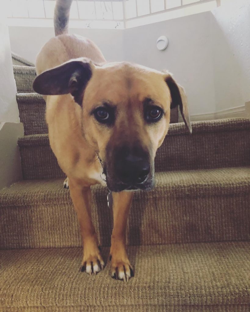Sometimes, animals have trouble with the new floors. They make unfamiliar sounds under our paws, feel different, and we may have trouble getting traction. The whole thing can be foreign to us! You can always opt for a carpet runner—there are even pet-friendly carpet stair pads available in many styles and colors that easily attach to your stairs without damaging them and are washable. Call my mom for more information!