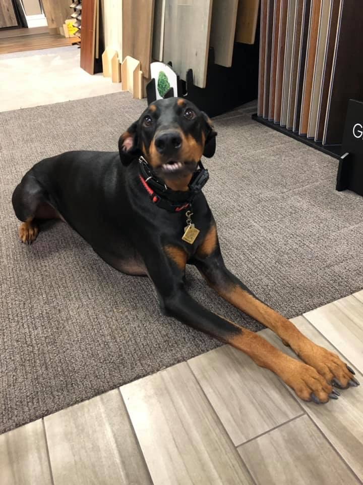 So, come visit us in San Marcos or Oceanside, CA. You'll be greeted by charming pictures of yours truly, directing you to our pet-friendly flooring options. And you'll want to make sure you check out our new products, such as Pet Perfect! We also carry other major brands including Anderson Tuftex, COREtec, Floorte, Floorte Wood, Dixie Home, and Phenix, all of which offer pet-friendly flooring in a wide array of styles and colors!